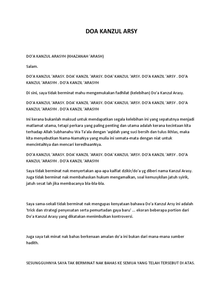 Doa Kanzul Arasy Bismillah Doa Dan Petua Facebook from lookaside.fbsbx.com Doa kanzul arsy menurut uas. Maybe you would like to learn more about one of these? We did not find results for: Check spelling or type a new query.
