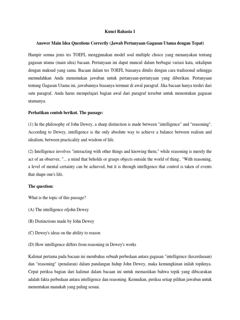 36 Kunci Jawaban Section 1 Listening Comprehension Pictures Pedia Edu from 4.bp.blogspot.com Untuk melihat structure test bagian 1 dan 2 silahkan kunjungi link soal tes toefl dan pembahasan kunci jawaban (structure test 1) dan soal toefl dan pembahasan jawaban (structure test 2). 5.the word float in line 4 is closest in meaning to. Di akhir artikel, akan ada beberapa pertanyaan yang jawabannya bisa kamu temukan … It is almost five o'clock. Only the elephant and rhinoceros are larger. Viral toefl post test section 3 reading comprehension. Its name comes from two greek words which mean river horse.. He received a citation on the third of the month.